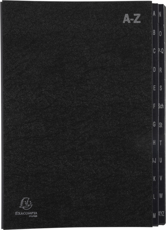 Sorteringsmapp Exacompta i kraftig svart karong och dragspelsrygg som ger mappen stor kapacitet. Lämpligt för dig med många olika uppgifter på en och samma gång att hålla reda på