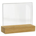 Akrylskyltar med fot i trä är perfekta för en exklusiv exponering av exempelvis menyer eller andra budskap. Den exklusiva träfoten i ek i kombination med en glasklar akrylhållare ger till och med ett enkelt utskrivet papper en premiumkänsla med ett ombonat och snyggt intryck. Finns i flera olika storlekar, både i liggande och stående utförande.