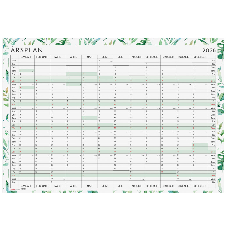 Kalenderblad som levereras som vikt till A4 i förpackning om 5 st. 28 rader. --Väggkalender 2026 från Burde --Forma...Art nr. 61236126319,00 kr