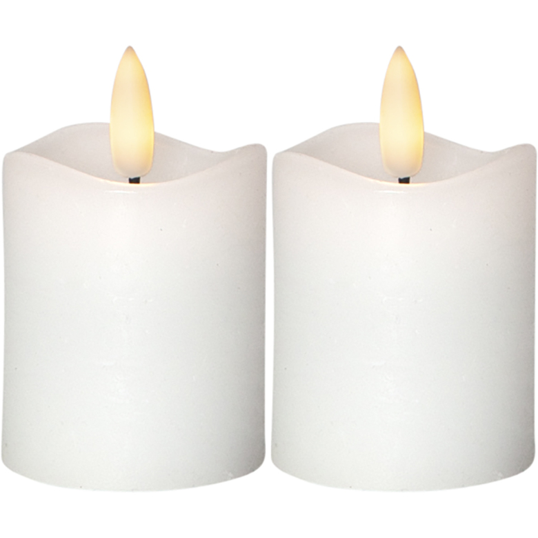 LED blockljus 2-pack Flamme. 2-pack votivljus med mycket naturtrogen låga som lyser med varmvitt sken. De har en inbyggd timer som lyser i 6 timmar. För inomhus användning.