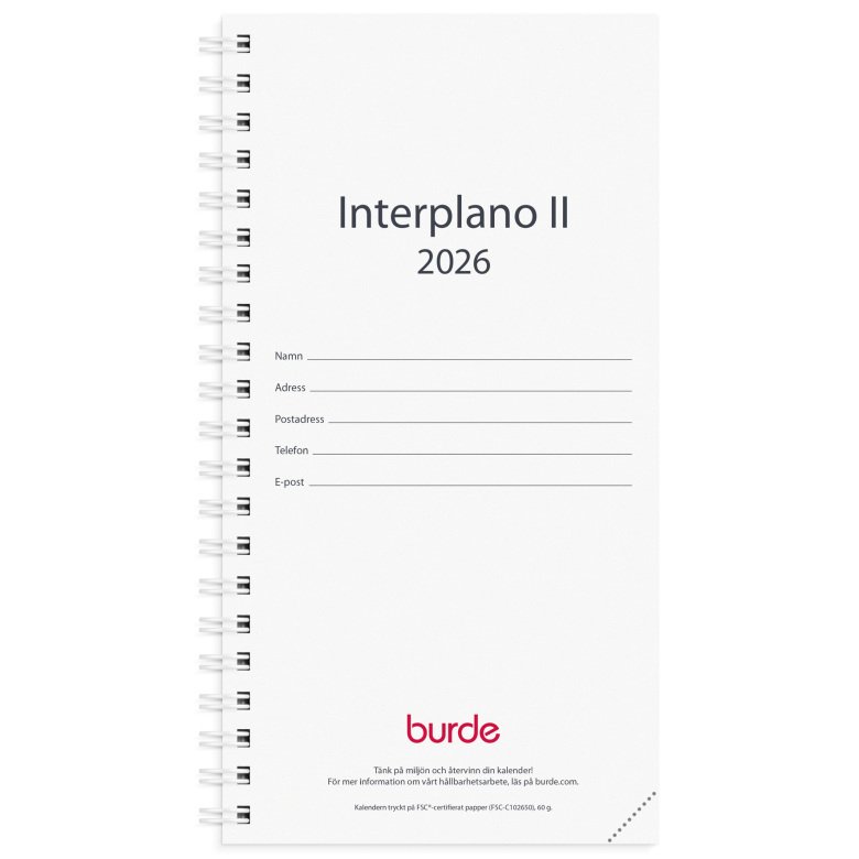 --Kalender 2026 från Burde --Format: 83x158 mm --Layout: Vecka/uppslag --Timindelning 8-19 --Kalendarium: 2025-12-15?...Art nr. 6136302679,00 kr