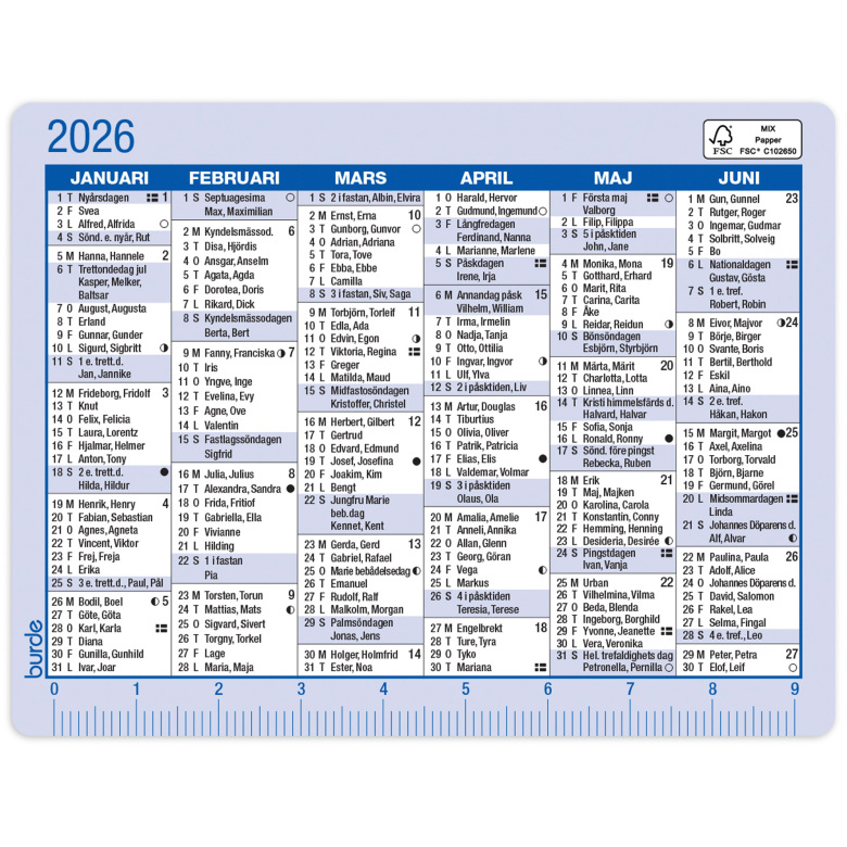 --Kalender 2026 från Burde --Format: 67x105 mm --Layout: Liggande --Månad/uppslag --Kalendarium: 2026-01-01?2026-1...Art nr. 6132062661,00 kr
