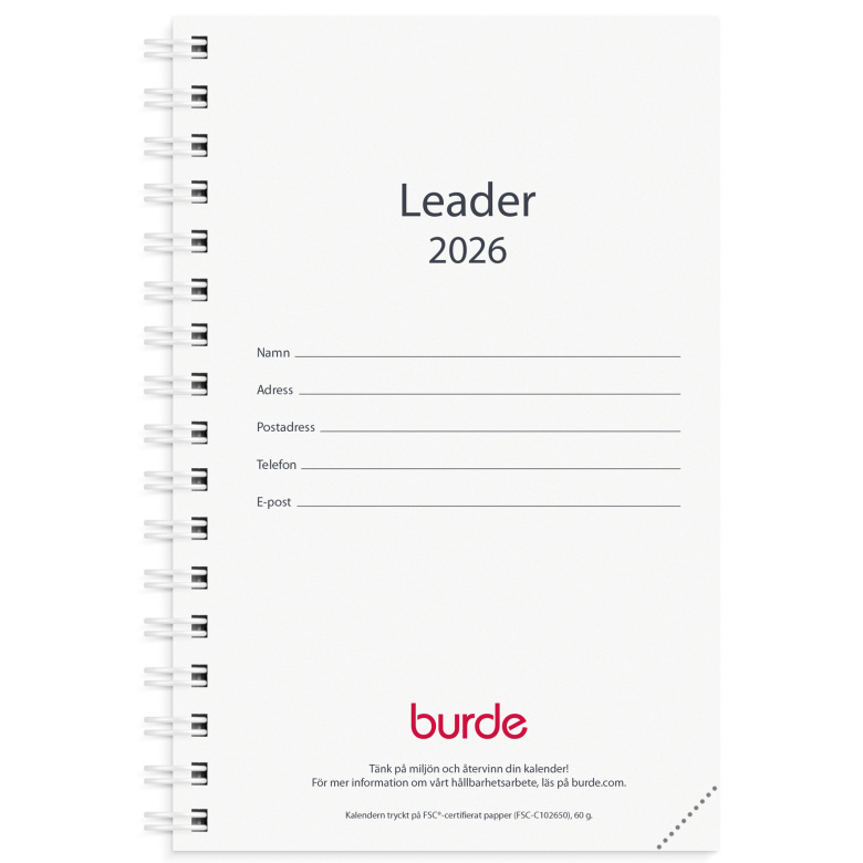 --Kalender 2026 från Burde --Format: 83x158 mm --Layout: Stående --Vecka/uppslag --Timindelning 8-19 --Kalendarium: 2...Art nr. 6136402679,00 kr