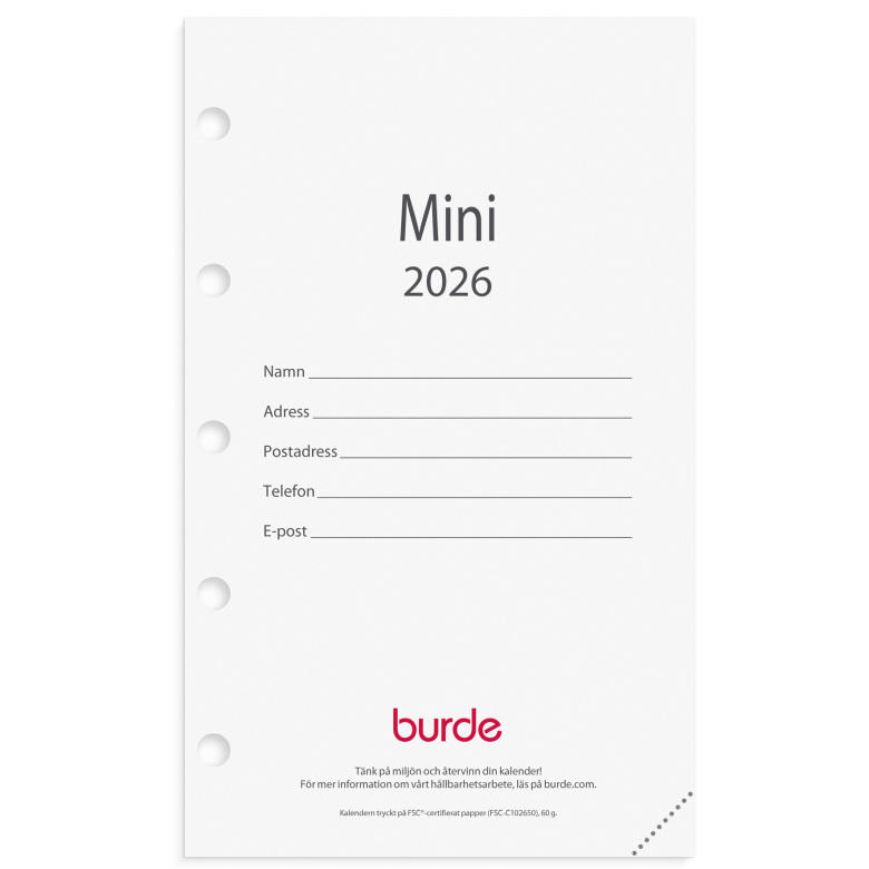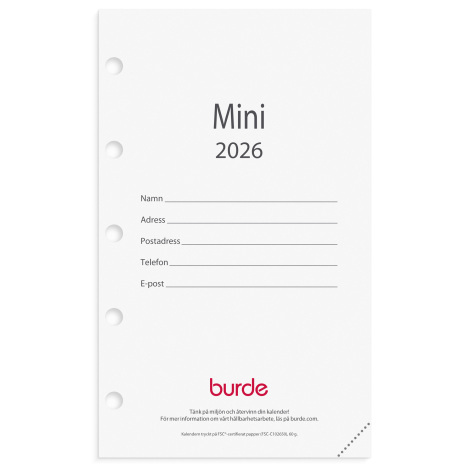 --Kalender 2026 från Burde --Format: 83x127 mm --Layout: Stående --Vecka/uppslag --Timindelning 7-21 --Kalendarium: 2...Art nr. 6133462698,00 kr