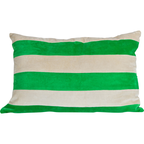 Kudde Pathi L. Den mjukaste av kuddar mixad med de coolaste ränderna i olika färger och i beige bomullssammet. Med den här kudden i soffan får du direkt en kombo av attityd och lyx.