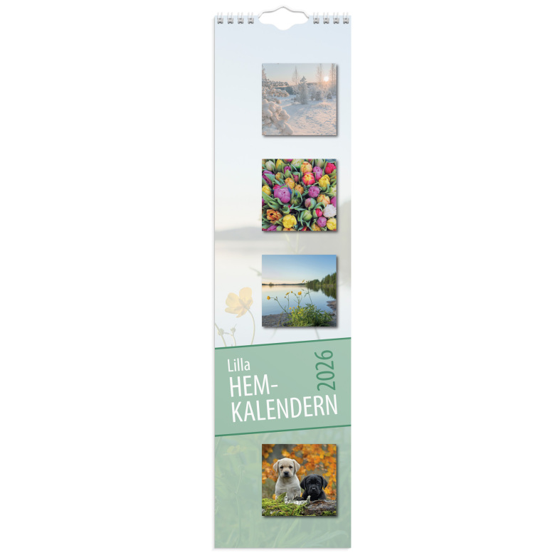 Lilla Hemkalendern i väggformat från Burde. En månad per dag, spiralbunden.