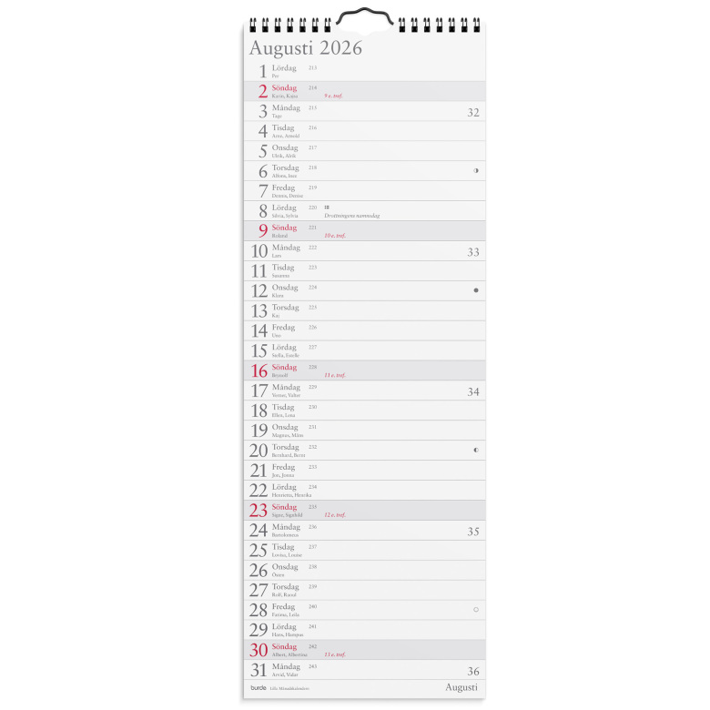 Lilla Månadskalendern från Burde, spiralbunden väggkalender.