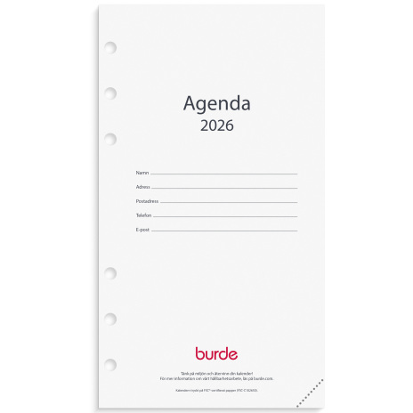 Hålad kalenderrefill till systemkalender med ringmekanism. --Kalender 2026 från Burde --Format: 95x170 mm --Layout: ...Art nr. 61460126102,00 kr