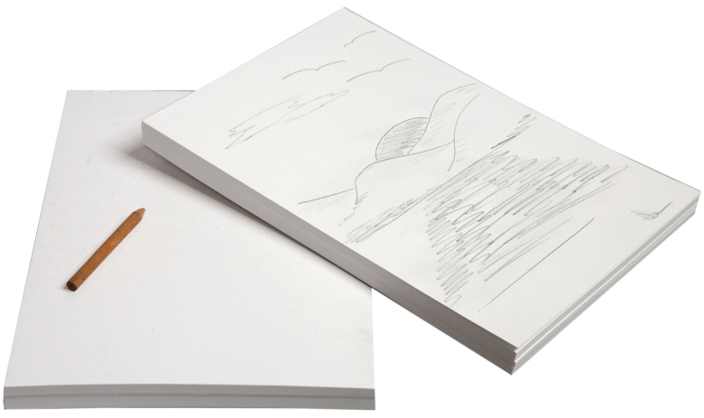 Vitt ritpapper i kantlimmat block på bakark. Passar både som skiss- och ritblock. Allting börjar med ett tomt blad som du kan uttrycka dig själv på utan prestationskrav ? låt därför din kreativitet flöda fritt! Plocka fram dina blyertspennor, kol- och pastellkritor.