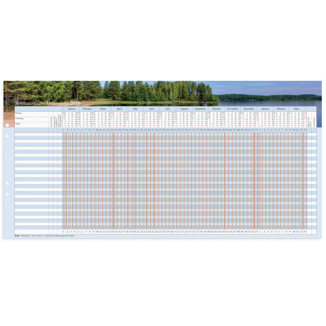 Kalenderblad som levereras som vikt till A4 i förpackning om 5 st. 28 rader.