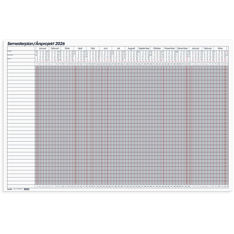 Kalenderblad som levereras som vikt till A4 i förpackning om 5 st. 28 rader. --Väggkalender 2026 från Burde --Forma...Art nr. 61236126319,00 kr