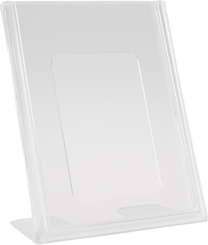 Displaystället är lämpligt att placera vid en receptions-, restaurangdisk, mässa eller andra offentliga platser, där det behöver vara praktiskt och enkelt att presentera information och få kundens uppmärksamhet. Enkelt och snabbt byter du meddelande i ramen. -- Tillverkade av glasklar / transparent polystyren -- Läsbar från ett håll -- Finns i flera olika storlekar -- En storlek för varje typ av information