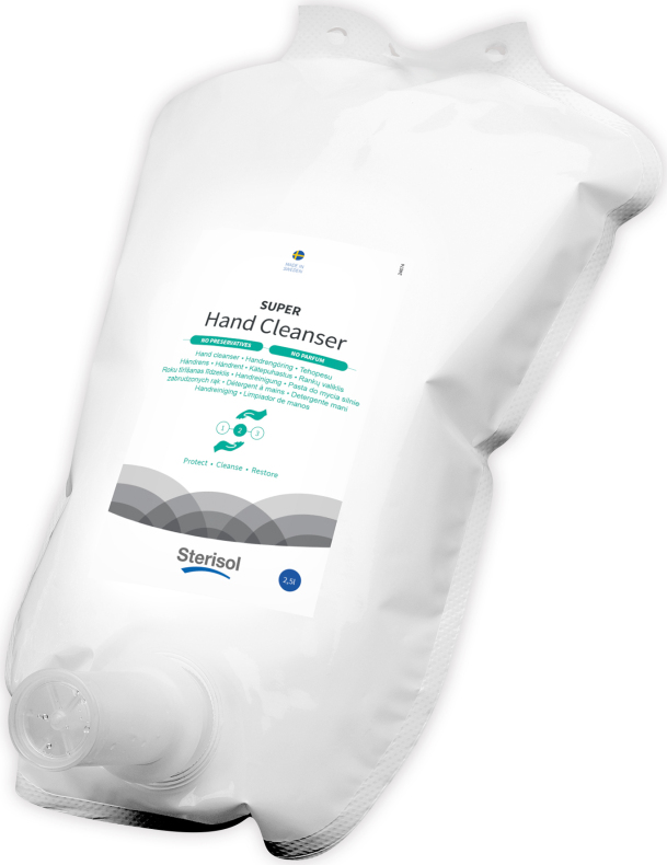Den flytande tvålen Sterisol SUPER, är en mycket effektiv handrengöring utan konserveringsmedel. Med majs som friktionsmedel för extra tvättkraft mot den mycket svåra smutsen. Den är skonsam mot huden och innehåller vegetabiliska oljor, som både löser smuts och återfettar huden.