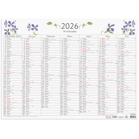 --Kalender 2026 från Burde --Format: 240x152 mm --Layout: Månad/blad --Kalendarium: 2026-01-01?2026-12-31 --Häftklamr...Art nr. 6152972651,00 kr