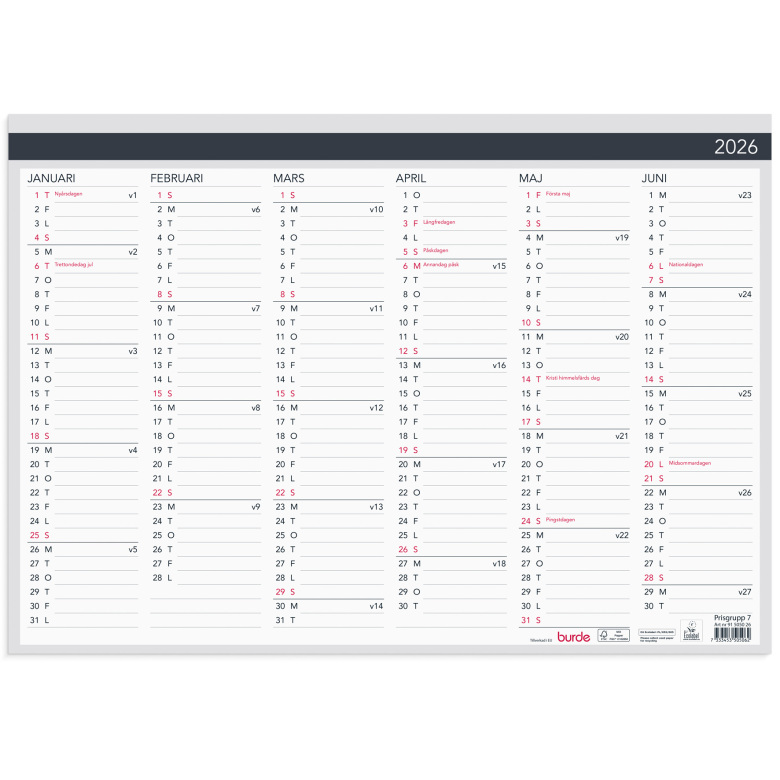 Stora Månadskalendern i väggformat från Burde. --Väggkalender 2026 från Burde --Format: 295x390 mm --Layout: Månad/b...Art nr. 61172626466,00 kr