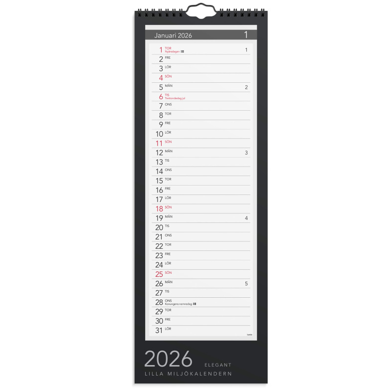 Väggkalender Elegant från Burde, spiralbunden och med ett nytt motiv varje månad. --Väggkalender 2026 från Burde --F...Art nr. 61170826215,00 kr