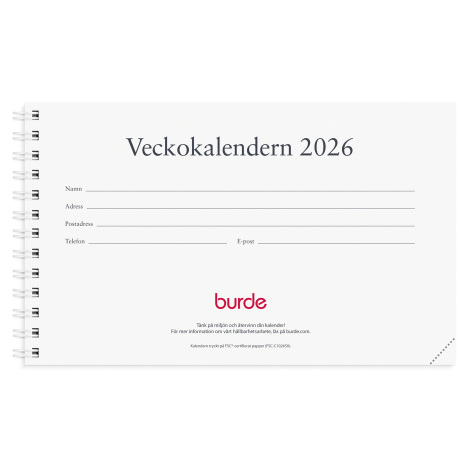 Veckokalendern refill från Burde, spiralbunden och med omslag i kartong.