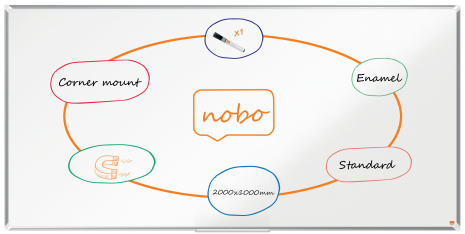 Whiteboard Premium Plus Emalj. Emaljerad magnetisk whiteboardtavla med en modern elegant ramkant i aluminium. Fästes med genomgående hörnmontering och inkluderar ett stort pennfack för förvaring av whiteboardpennor och sudd. Emaljerad magnetisk whiteboard yta erbjuder en överlägsen grad av raderbarhet och hållbarhet för frekvent användning.