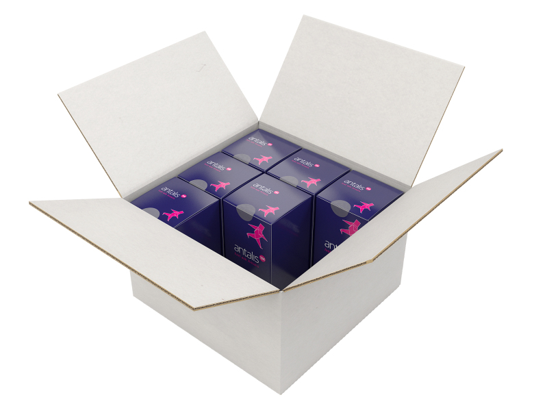 Wellpapplåda tilllverkad i vit kvalitet och olika utförande.