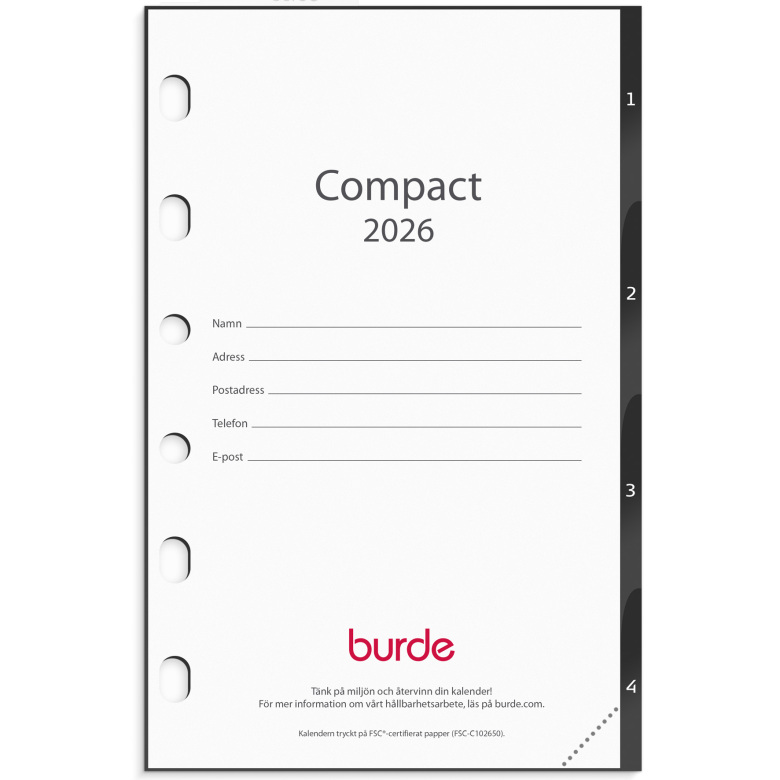 Hålad kalenderrefill till systemkalender med ringmekanism. --Kalender 2026 från Burde --Format: 135x205 mm --Layout:...Art nr. 61480226214,00 kr