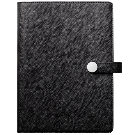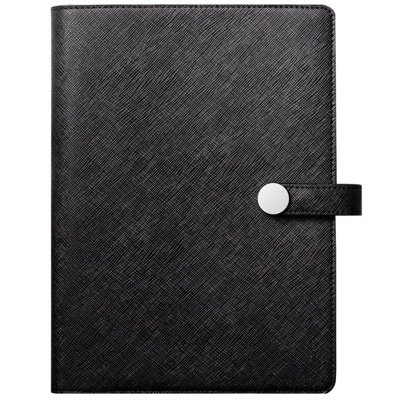 Kalender Diplomat Tora från Burde har löst omslag med slejf, två fickor för visitkort eller bankkort samt en större ficka på insidan. Pennhållare. Diplomat monterad inuti omslaget.