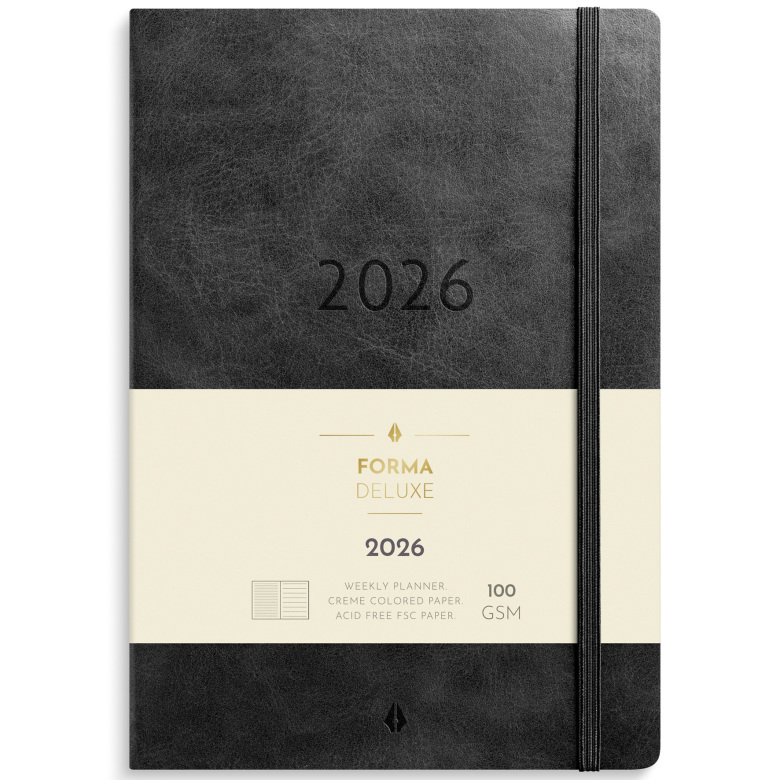 Kalender 2026 från Burde. Format: A5. Layout: Liggande. Vecka/uppslag. Timindelning 8-17. Kalendarium: 2025-12-22 - 2027-01-03. Omslag: Konstläder. Inbunden. Detaljer: Gummiband. Märkband. Pappersficka. Innehåll: Kyrkliga helgdagar, Flaggdagar, Helgdagar/aftnar, Internationella helgdagar, Linjerade vänstersidor, Månfaser, Namnsdagar, Anteckningssidor rutiga, Anteckningssidor linjerade, Anteckningssidor olinjerade, Internationella helgdagar översikt, Temadagar/händelser, Årsöversikt/årsöversikter, Årsplan/årsplaner. Antal sidor: 176. Miljöinformation: FSC® papper.