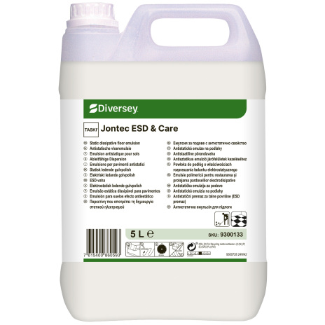 Jontec ESD & Care från Taski är en elektriskt ledande golvpolish, speciellt utvecklad för att förhindra uppbyggnad av statisk elektricitet och skydda känslig elektronisk utrustning. Produkten skapar en slitstark skyddsfilm med hög glans som är kompatibel med de flesta underhållsmetoder. Denna polish är idealisk för miljöer där ESD (elektrostatiska urladdningar) kan orsaka problem ? exempelvis i serverrum, laboratorier och andra teknikintensiva ytor. Den passar även utmärkt för ESD-klassade golv där de elektriskt ledande egenskaperna måste bevaras.